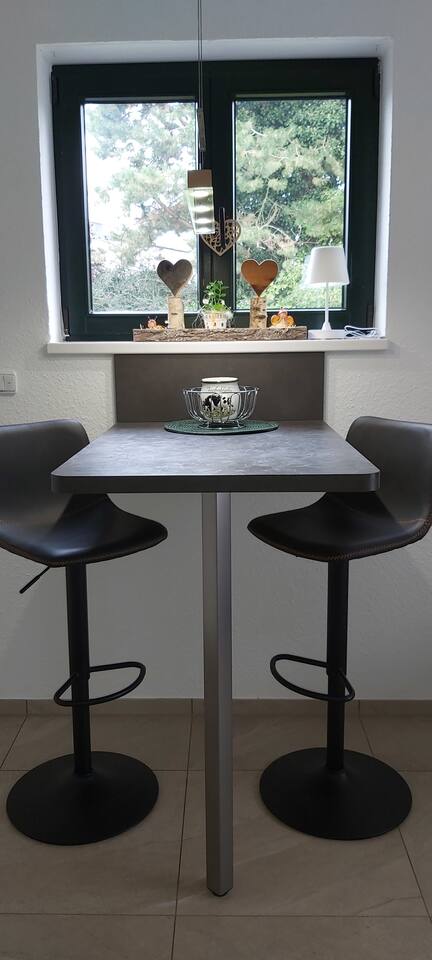 Die Unterkunft bietet Ihnen einen schönen Wohnbereich im Erdgeschoss. Mit einer neuen Pantryküche, die das Nötigste beinhaltet, einem dazugehörigen Essbereich und einem angrenzenden und überschaubaren Wohnbereich mit Couch , Tisch und großem TV.
